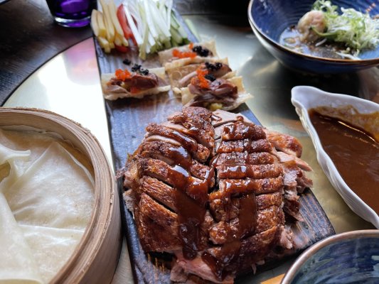 Очень понравилась стеклянная лапша с морепродуктами, приготовлена идеально, утка по-пекински тоже не плоха, подача интересная.